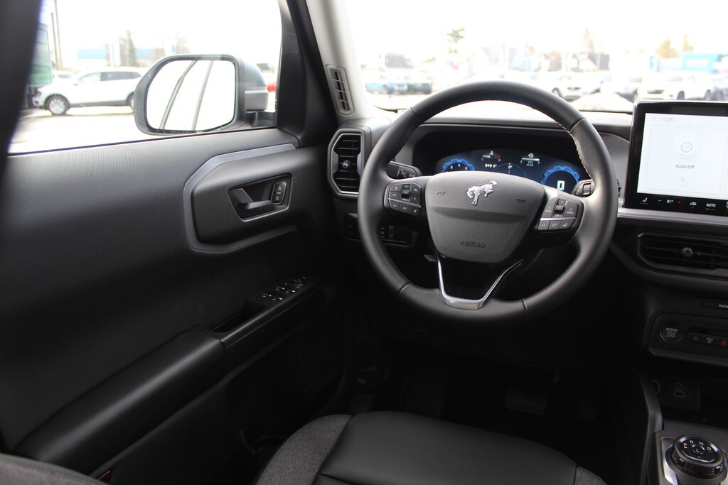I got a 2025 Big Bend with the black diamond off road package. The steel modular front and rear in combination with bush guard gives this year model. A very aggressive off road look. With the ability to easily mount accessories and power them with the factory installed auxiliary switches. Hitch receiver seamlessly mounted into the rear steel bumper flanked by some very chunky recovery points. The upgraded aluminum rims wrapped with Continental all-terrains. It make this the most capable bronco sport yet. The interior of the 2025 has been updated with a new 13 inch touchscreen with Android Auto and apple car play. The lines of the dash flow elegantly from the new infotainment screen to the new all digital 12 inch gauge chaster. Toggling through the different modes on the gauge chaster is very intuitive, and all the displays are laid out very cleanly. Moving from gauge chaster the center storage cubby just below the infotainment screen there is a wireless charger and USB/ USB-c ports. The passenger side of that same cubby gets a handle and a matching one on the roof just in case the driver bucks a little too much. The passenger also gets a mesh storage area. That leads us to the fact this vehicle has tons of storage options all throughout. You have pockets on the sides of the front two seat big enough for the latest new phones. Very generous door storage on all four doors plus huge glove box and center console with 12 volt outlet. The back side of the center console has air vents and another 12 volt outlet plus a 110 outlet. Now getting to the cargo area it is massive for a crossover SUV. With off road package you get a cargo management system and a very nice rubber mat. Under that there is a full size tire plus scissor jack and funnel to use with the capless filler system. On the liftgate there isa pair of very bright led lights turned on with a switch in the cargo area. This feature packed vehicle has tons awesome gadgets and hidden a little homages I spend all day just talk that. At the end of the day it is car. So how does it drive. It is wonderful, the steering and pedal response is beautiful. Rides very smooth and little to no road noise going down the highway. The active cruise control and co-pilot 360 have been very handy. The car literally drives itself most of the time. There is not enough good things I could same about this car. I love it and you pick one too. You will see what I mean. - 5.0