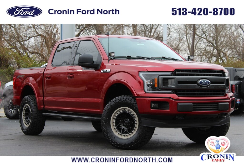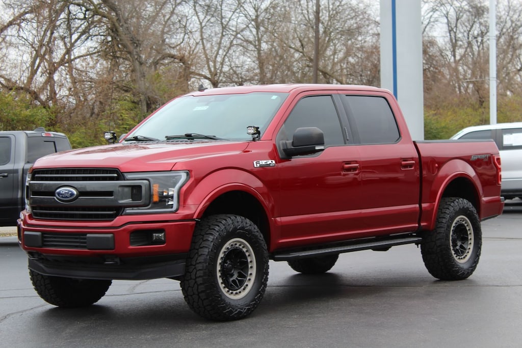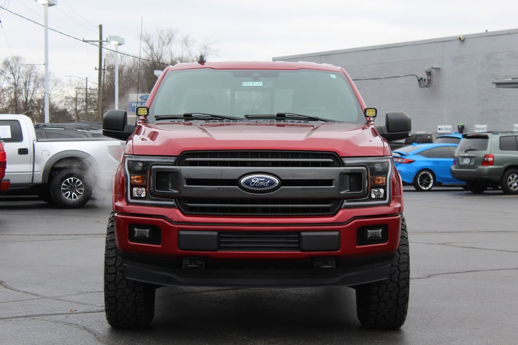 This 2019 Ford F-150 XLT in Ruby Red is powered by a 5.0L V8 engine paired with a 10-speed automatic transmission for strong, dependable performance. The 4WD system adds capability for towing, hauling, and varying terrain. This truck is equipped with a lift kit and aftermarket wheels, giving it enhanced ground clearance and a more aggressive stance. Inside, the XLT trim offers cloth seating, an 8-inch SYNC 3 touchscreen, Apple CarPlay, Android Auto, and a power-adjustable drivers seat. With its SuperCrew layout, advanced safety features, and upgraded exterior equipment, this F-150 offers both practicality and a customized look.